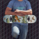 Add a touch of whimsy to your ride with this charming skateboard featuring a delightful frog perched on a lily pad in a serene pond, surrounded by fluttering butterflies. Perfect for nature lovers and those who appreciate a playful, boho-inspired design, this skateboard is both fun and functional, making it a unique addition to your collection.
