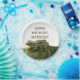 Create your own personalized party supplies when you add your own message to these paper plates that feature a photo of a frog sitting on a moss-covered rock. These plates are perfect for throwing parties for fans of frogs and other amphibians. The realistic photo illustration is perfect for science and nature lovers.