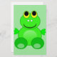 Cute scrapbook paper that features a cute, green cartoon frog on a green striped background.