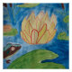 Exotic and colorful, this is an eye-catching and attractive frog and waterlilies original watercolor. The shy little frog, painted in brown and turquoise, is looking for a safe lily pad to hop to. The deep water of the pond has magnificent yellow waterlilies and rich green lily pads floating on the surface and deep brown bulrushes are growing.
