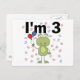An adorable 3rd birthday design on 3rd birthday T-shirts, cards, stickers, magnets, tote bags, and more featuring a green frog with birthday balloons and text that reads "I'm 3".