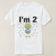 An adorable 2nd birthday design on 2nd birthday T-shirts, cards, stickers, magnets, tote bags, and more featuring a green frog holding a blue frosted cupcake and text that reads "I'm 2".