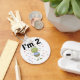 An adorable 2nd birthday design on 2nd birthday T-shirts, cards, stickers, magnets, tote bags, and more featuring a green frog holding a blue frosted cupcake and text that reads "I'm 2".
