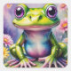Green Frog Cottagecore With Colourful Decorative Flowers Digital Art