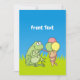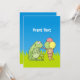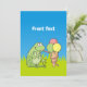 Smiling frog steals an ice-cream cone with his tongue over green grass under blue sky.