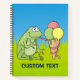 Smiling frog steals an ice-cream cone with his tongue. Custom text.