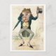 This postcard is a reproduction of a vintage illustration showing a dapper frog with a top hat, bouquet of flowers, and umbrella. He is wearing a suit.