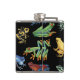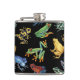 Frogs on black hip flask