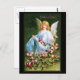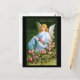 Vintage German Easter card showing an angel dressed in blue collecting pink roses. The card message is "Frohliche Ostern" ( Happy Easter ).
