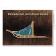 Out on the trail on Christmas Eve. Features a dog sled with a teal sled bag superimposed on a digital rendering of caribou (reindeer) fur. German text reading "Fröhliche Weihnachten" appears and you may personalize the card by adding a bit of text on the sled bag.