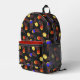 Frolf - Flaming Disc Golf printed backpack. A bag with background of chains with flying flaming discs in red, blue and yellow colours. A great backpack for someone that is a Frolf fan.