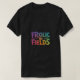 The t-shirt features the phrase "Frolic in Fields" in a playful, multi-coloured font. Each word bursts with a different vibrant hue, reminiscent of a sunny day spent frolicking in a field.