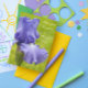 A lovely Mother's Day greeting card for mom from daughter that features the photo image of a lovely, purple Iris flower against a bright, green background. Select your greeting card paper type.