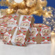 This festive custom wrapping paper features an outer frame with swirled a red and white peppermint candy cane design. The special phrase "Official Seal of the North Pole" is printed at the top. A custom name is printed at the top which you can personalize to include your own child's name or recipient. "From Santa" is printed in the bottom portion with the letters in the name "Santa" printed in a Christmas style font. Expedited Parcel is printed below over a faux gold foil background. Rudolph the reindeer antlers and red nose are printed in the back. The background features a light chestnut brown colour.