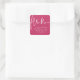 This return address sticker features a bold magenta pink background along with a modern script "from." This sticker works well for save the dates, weddings and more.