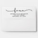 Modern, simple black and white return address envelope featuring typography script ''from'' in trendy lettering and address in capital lettering.