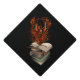 Original design of a phoenix bird coming out of a stack of books. Created with pencils, pens and coloured in vector.