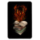Original design of a phoenix bird coming out of a stack of books. Created with pencils, pens and coloured in vector.