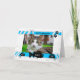 Add your cat's photo to this adorable card from the pet, featuring blue, white and black with a toy mouse, food bowl and a fish shaped I.D. tag where you put your kitty's name. Cute message inside is fully customizable for you to write your own message, suitable for birthdays or any occasion when Mom or Dad need a card from their favourite furry feline.