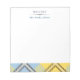 Chic, modern and trendy customizable notepad features "From The Desk Of " ,"personalized name" at the top and yellow-blue plaid tartan at the bottom.