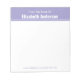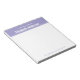 This from the desk of notepad has white display text at the top. The top portion is pale purple. There are two lines of white display text in the purple area. The top line says 'From The Desk Of'. The second line is for the recipient's name. At the bottom, there's pale purple display text for contact information such as an email address and phone number.