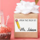 Design features an original marker illustration of a sharp yellow #2 pencil with a pink eraser. Simply personalize with your teacher's information.