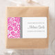 Custom name from the kitchen of stickers in bright fuchsia hot pink, grey and white elegant vintage floral damask pattern. Perfect for labelling baked goods, canned preserves, and many other goodies from the kitchen, the perfect treat for the baker in your life.