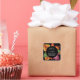 Personalized 'From the Kitchen Of' fall season food label stickers- Black background, which may be changed to any colour. Reads 'From the Kitchen Of' in handwritten look lettering. Cook's name in script and custom name of food or homemade product printed underneath. With a colourful fall leaves border in traditional autumn colours of red, gold, orange, brown, and green. Lovely canning stickers for fall, bake sales, branding, etc. Click Customize option to change text colours, size, and font styles.