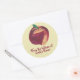 These peach lid stickers feature a painting of a whole ripe peach by CherylsArt. The peach is shades of red, red cranberry, and yellow; and it has a green leaf. There is a template placeholder for you to type in the cook's name. The background is pale yellow and it can be customized to a different colour if you like. Thank you for shopping CherylsArt on Zazzle.