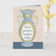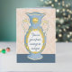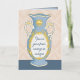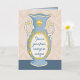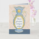 A birthday card for the antique lover, vintage hunter and thrift store stalker, the clever and funny copywriting pokes gentle fun at the person's advancing age while still telling them how priceless they are to you. Real shiny metallic foil adds a feeling of luxe elegance to this antique flower vase in powdery blue on a cornflower blue table in front of a background of damask floral wallpaper.