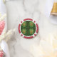 Front and back view of a poker chip with red edges and intricate green tree design at the center, conveying a sense of nature and symmetry.