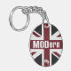 New Orleans Scooter Girls round keychain, Logo over chequerboard on one side, MODern black-Jack design on the other.