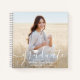 Add an elegant personalized touch to college or high school graduation party decorations with a custom 2 photo spiral guest book. The pictures and all wording on this template are simple to customize, including congratulations message from parents on back. The interior pages can be lined or blank for use as a scrapbook, notebook or journal. The design features chic white handwritten style script calligraphy, stylish modern minimalist typography, and two pictures of your choice, such as senior pictures or images from the commencement ceremony. This unique guest book makes an elegant keepsake graduation gift idea. Congratulations to the graduate!