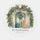 A Christmas Holiday Ornament with beautiful watercolor door, wreaths, bows and a cute golden retriever dog - Holiday decorations from Ricaso - add your own text and a photograph (to the back)