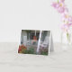 Photography, of a front porch and flower garden, and an inspirational saying comprise this card.