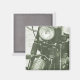 Biker magnet with front fork and headlight view of a cruiser motorcycle in artistic photo.