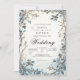 This design evokes a serene winter wonderland with delicate branches and muted berries framing the scene. The cool, frosted aesthetic creates an atmosphere of ethereal romance and crisp beauty.