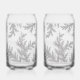 Elegant Frosted Fern Glassware. This captivating full-wrap design features intricate, delicate fern-like foliage, giving the impression of frosted leaves or a subtle silver etching. Perfect for adding a touch of sophisticated nature to your table. Ideal for seasonal gatherings, special occasions, or everyday elegance. High-definition, durable print/etch.