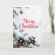 This frosted Merry Christmas card features pine cones dusted with snow, creating a serene winter wonderland perfect for sending holiday warmth.