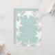This chic and modern boy's baby shower invitation features a robin egg blue background with white and silver frosted snowflakes. The reverse side features white diagnol stripes on a robin egg blue background. Personalize it for your needs. You can find matching products at my store.