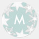 Frosted Snowflakes Light Blue Monogram Holiday Classic Round Sticker