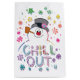 Check out Frosty the Snowman with colourful rainbow snowflakes falling around, featuring fun candy cane lettering that reads "Chill Out".