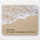 Frothy ocean saltwater on beach sand with inspirational quote.