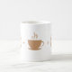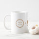 A frowning face indicates their mood before drinking coffee, while a happy face indicates their mood after drinking coffee.