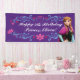 This Frozen Birthday Banner features Anna along with a beautiful floral frame and a purple background. The text can be customized with the birthday princess's age on her special day! This festive birthday banner is the perfect addition to your Frozen Birthday party!