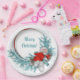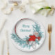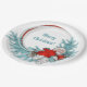 Frozen Ice Blue Christmas Branch Red Poinsettia Elegant Christmas Party Paper Plate, you can change or delete the custom text Merry Christmas