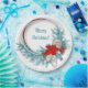 Frozen Ice Blue Christmas Branch Red Poinsettia Paper Plate