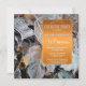 Party invitation featuring frozen leaves with optional swirls and a terra cotta gold stylized text background. Beautiful for a fall or winter birthday party or cocktail party.