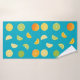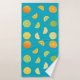 Cet ensemble de serviettes de bain comprend des citrons, des citrons et des oranges sur un arrière - plan bleu turquoise.
