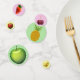 Bananas, cherries, pineapples, strawberries and apples on a polka dot background.